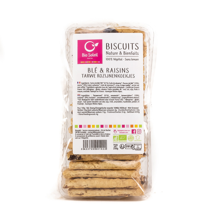 Biscuits Nature et Bienfaits Blé aux Raisins Bio 250g