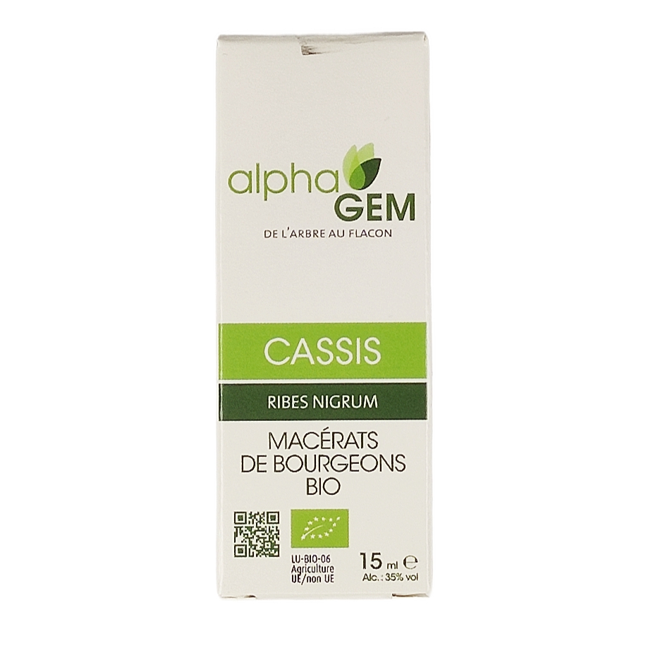 Glycérine végétale* (Glycérol, E422), Alcool* (35%), Eau, Bourgeons de feuilles Cassis* (Ribes nigrum) - 22,5 mg.