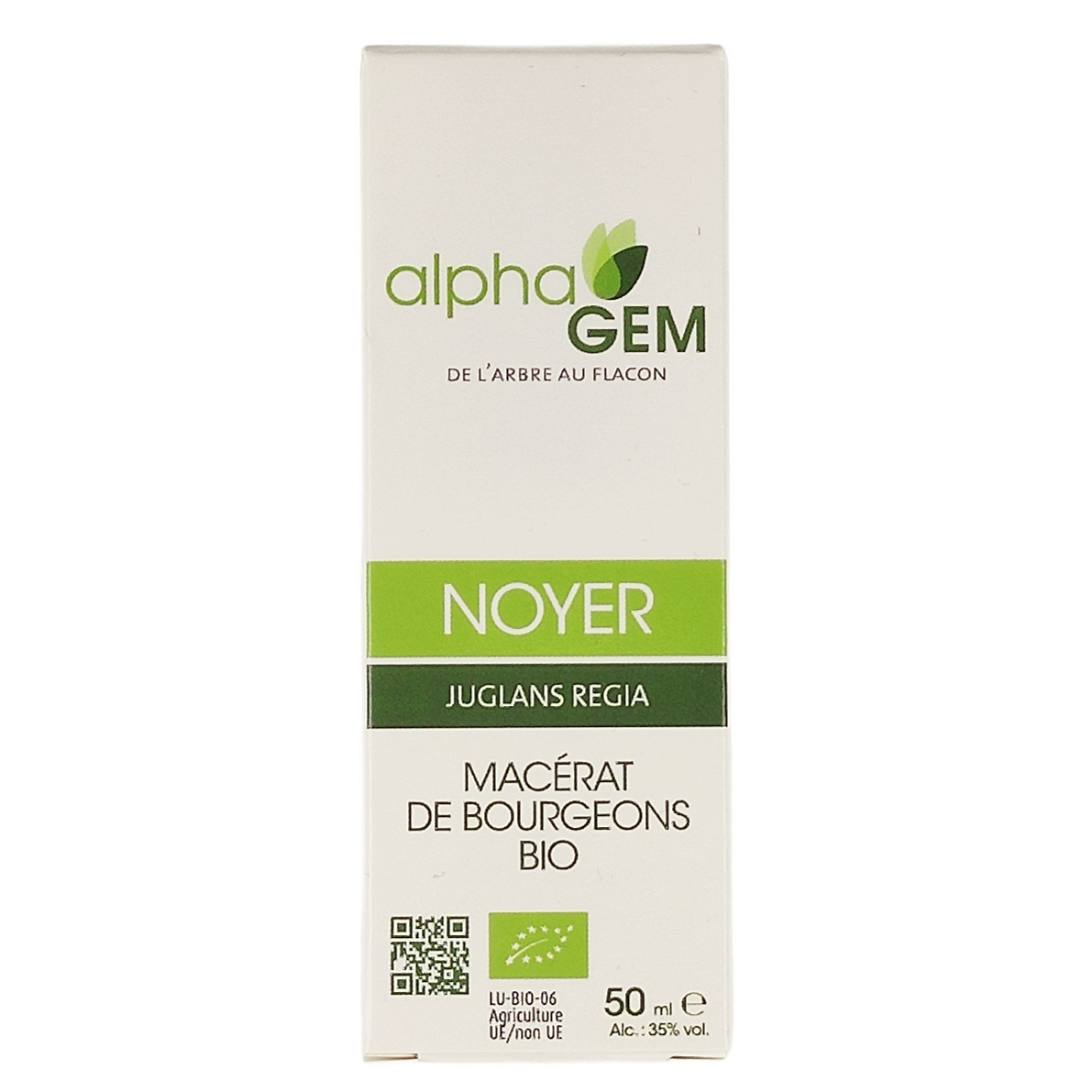 Glycérine végétale* (Glycérol, E422), Alcool* (35%), Eau, Bourgeons frais de feuilles de Noyer* (Juglans regia) - 37,5 mg.