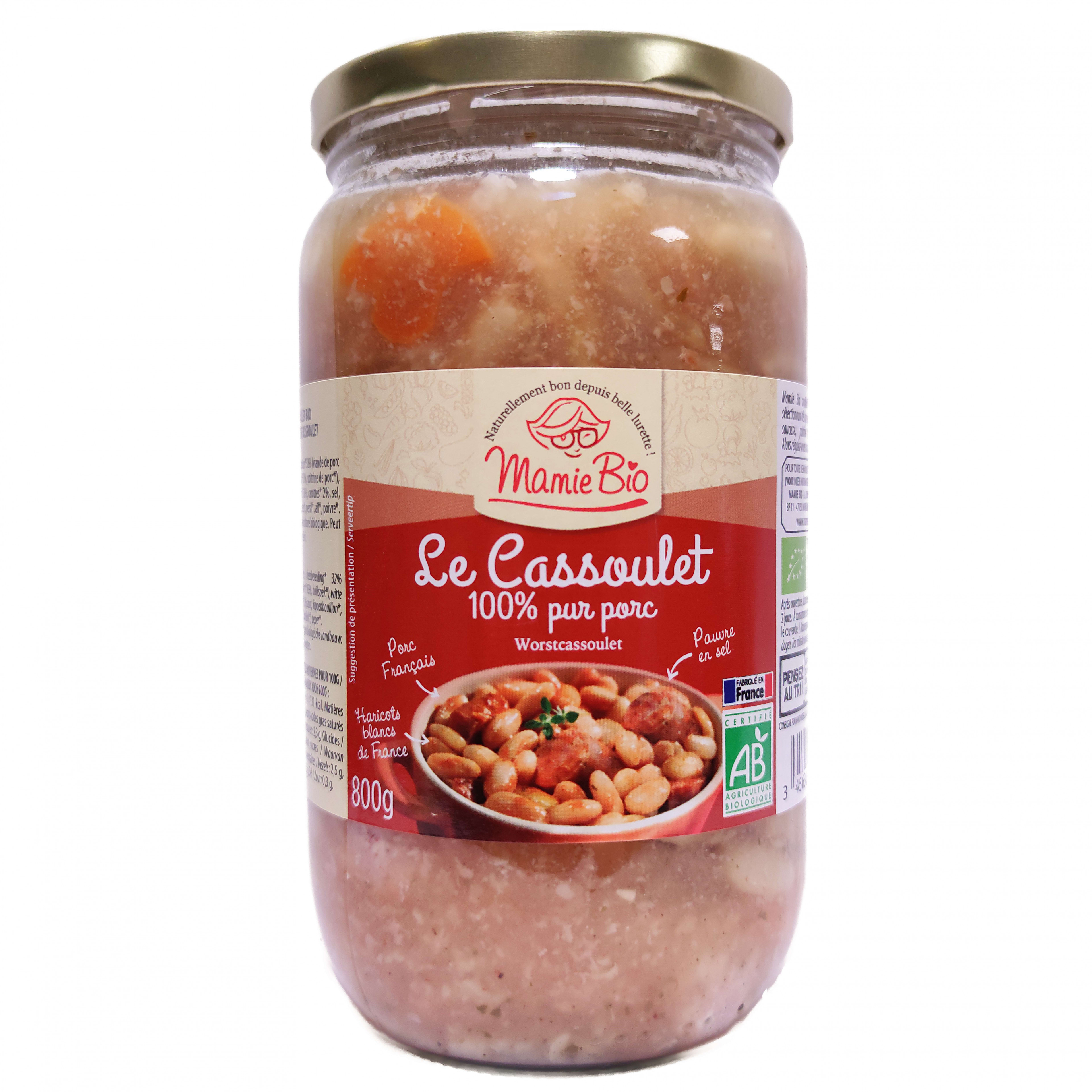 - Mamie Bio soutient les filières bio françaises en sélectionnant dès que possible se singrédients en France: saucisse, poitrine de porc, haricots blancs,..