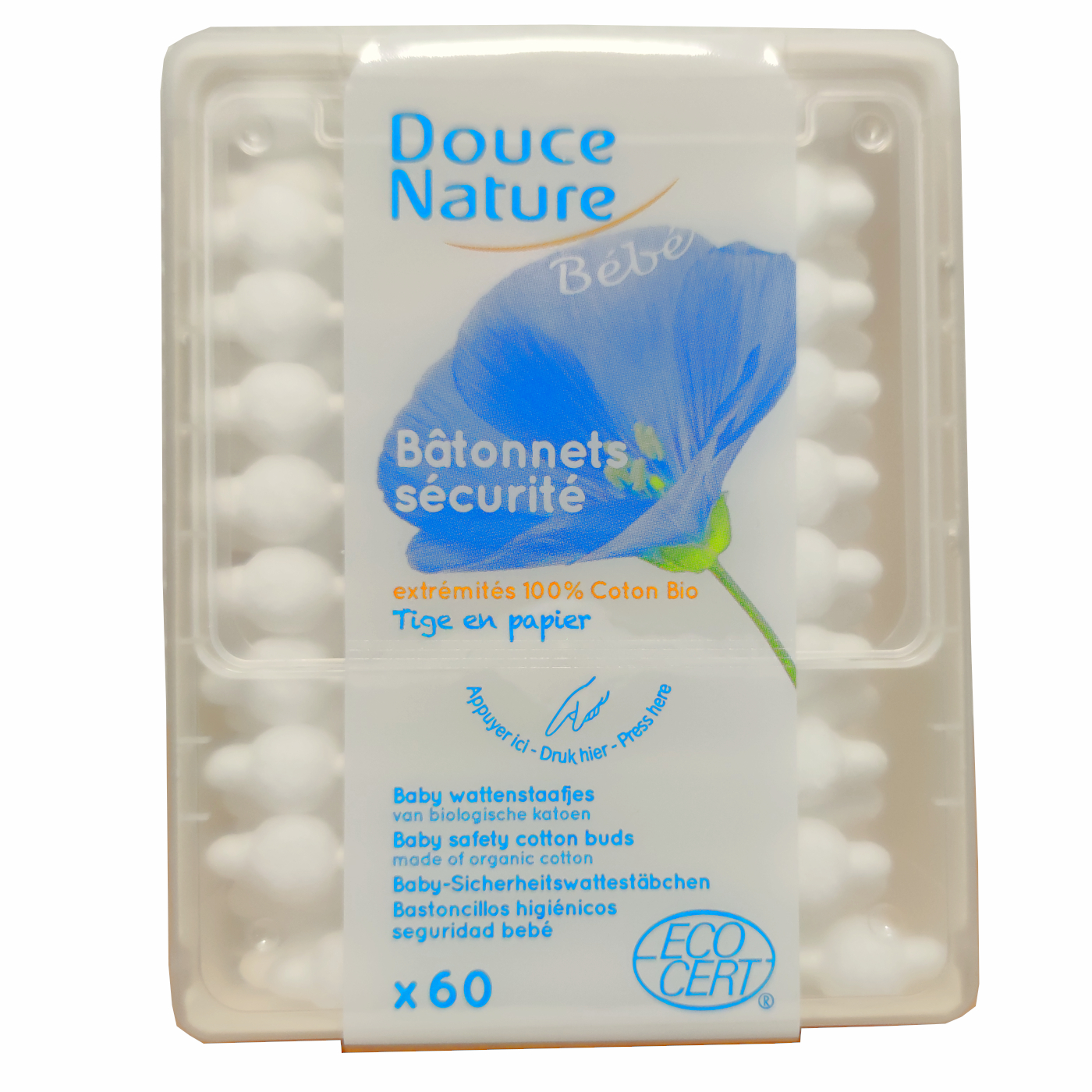 Bâtonnets D'Oreille Sécurité Par 60 Pour Bébé Bio