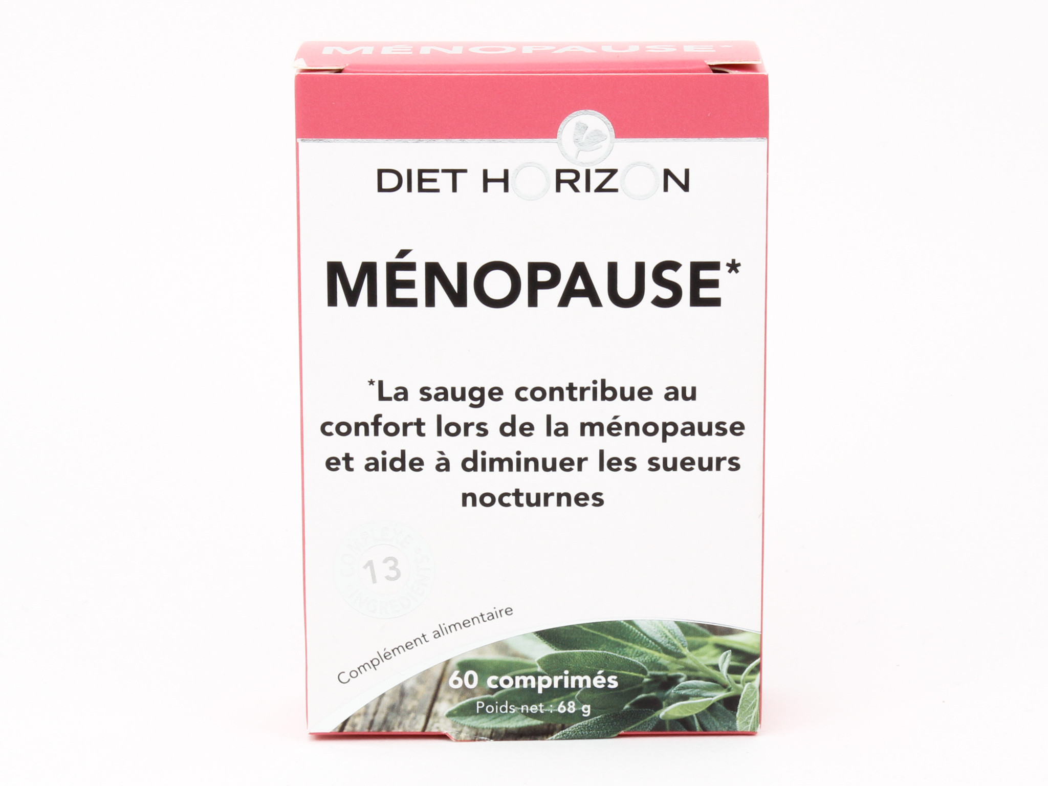 - Complément alimentaire Diet Horizon à la sauge. 60 comprimés. La sauge contribue au confort lors de la ménopause et aide à diminuer les sueurs nocturnes.