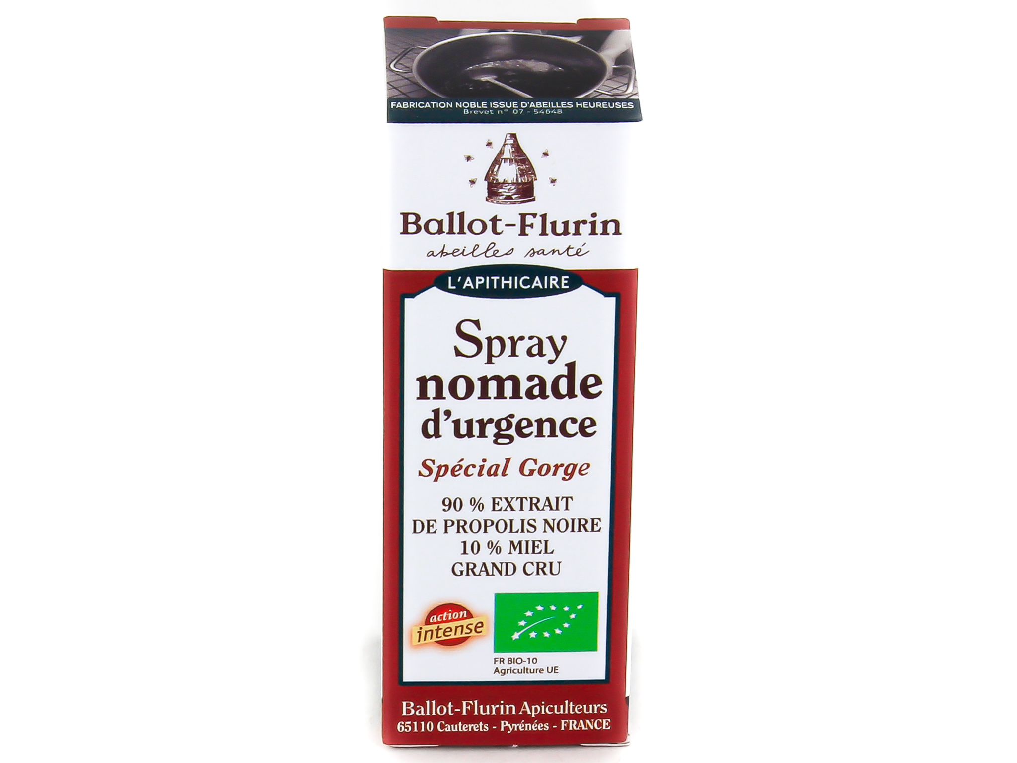 Extrait alcoolique de propolis noire 90% (eau de vie de blé, propolis brute de nos terroirs), miel de notre filière 10%. Alc.70% vol. Ingrédient issu de l'agriculture biologique.