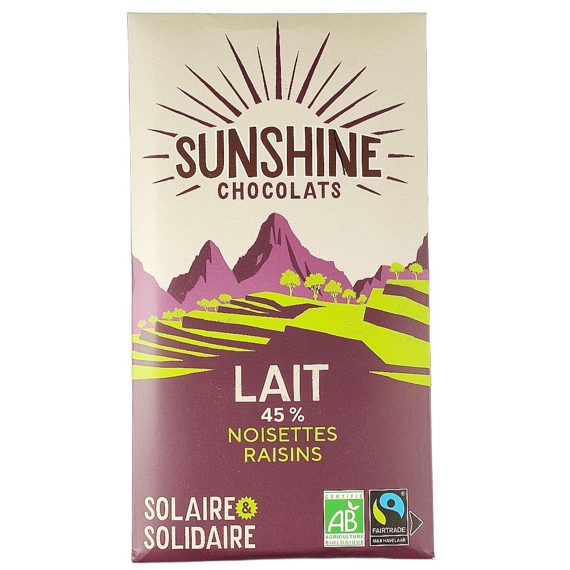 Tablette de Chocolat Lait Noisettes Raisins 45% 100g Bio